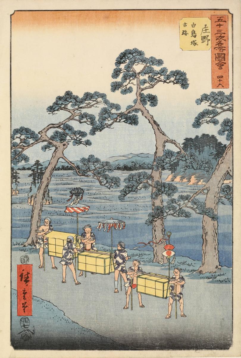 The Ancient Site of the Swan Mound near Shono, no. 46 from the series Pictures of Famous Places of the Fifty-three Stations, the Vertical Tōkaidō