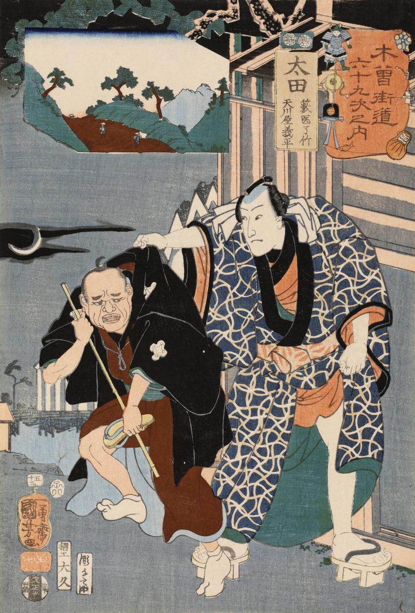 Ota: Amakawaya Gihei Dismissing the Quack Doctor Ryochiku, no. 52 from the series The Sixty-nine Stations of the Kisokaidō