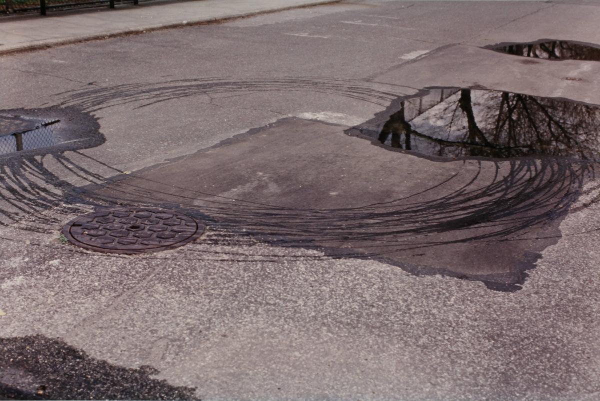 Not on viewOrozco's varied artistic production ranges from sculpture to video art to photography. The artist, who presently lives and works in New York, often interrelates found objects and inconspicuous situations, combining them to prove that meaning does not lie in the objects themselves, but in their relationships to one another. Orozco created the scene in Extension of Reflection by riding his bicycle between two puddles after a storm, and photographing the temporary pattern his tires inscribed on the urban landscape. His ability to animate the everyday is a central theme in his works: "What I'm after is the liquidity of things, how one thing leads you to the next…The works are about concentration, intention, and paths of thought."