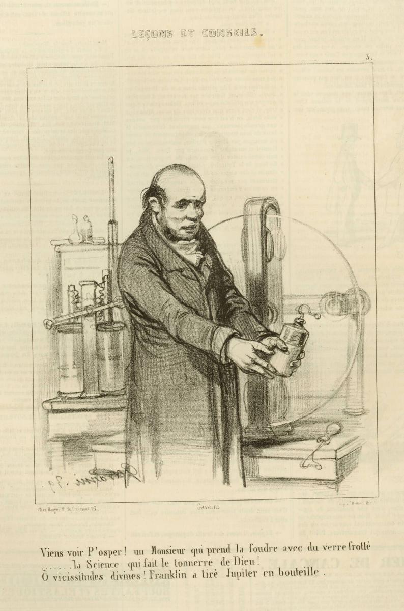 Viens voir P'osper! un monsieur qui prend al foudre avec du verre frotte...