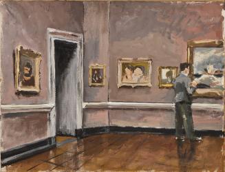 Not on viewThis drawing is part of a group of five watercolors of interior spaces at the Allen Memorial Art Museum made by Paul Arnold, Oberlin Professor Emeritus of printmaking and current Oberlin resident. They show the Stern gallery, with its characteristic angled corners; one depicts the luminous laylights that formerly allowed in natural light. The Museum is currently seeking to raise funds to restore and re-open these laylights as part of its on-going building renovation. Arnold has here lovingly captured a moment in the museum's formative years, in which the installation is similar to that of today but at a time when galleries were bathed in the day's changing light, enhancing the visitor's experience of the works on view.