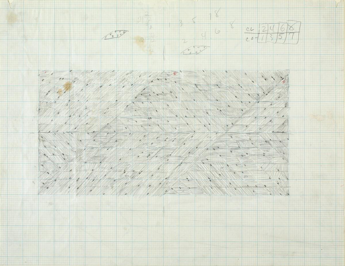 MediumPencil on blue-lined graph paper