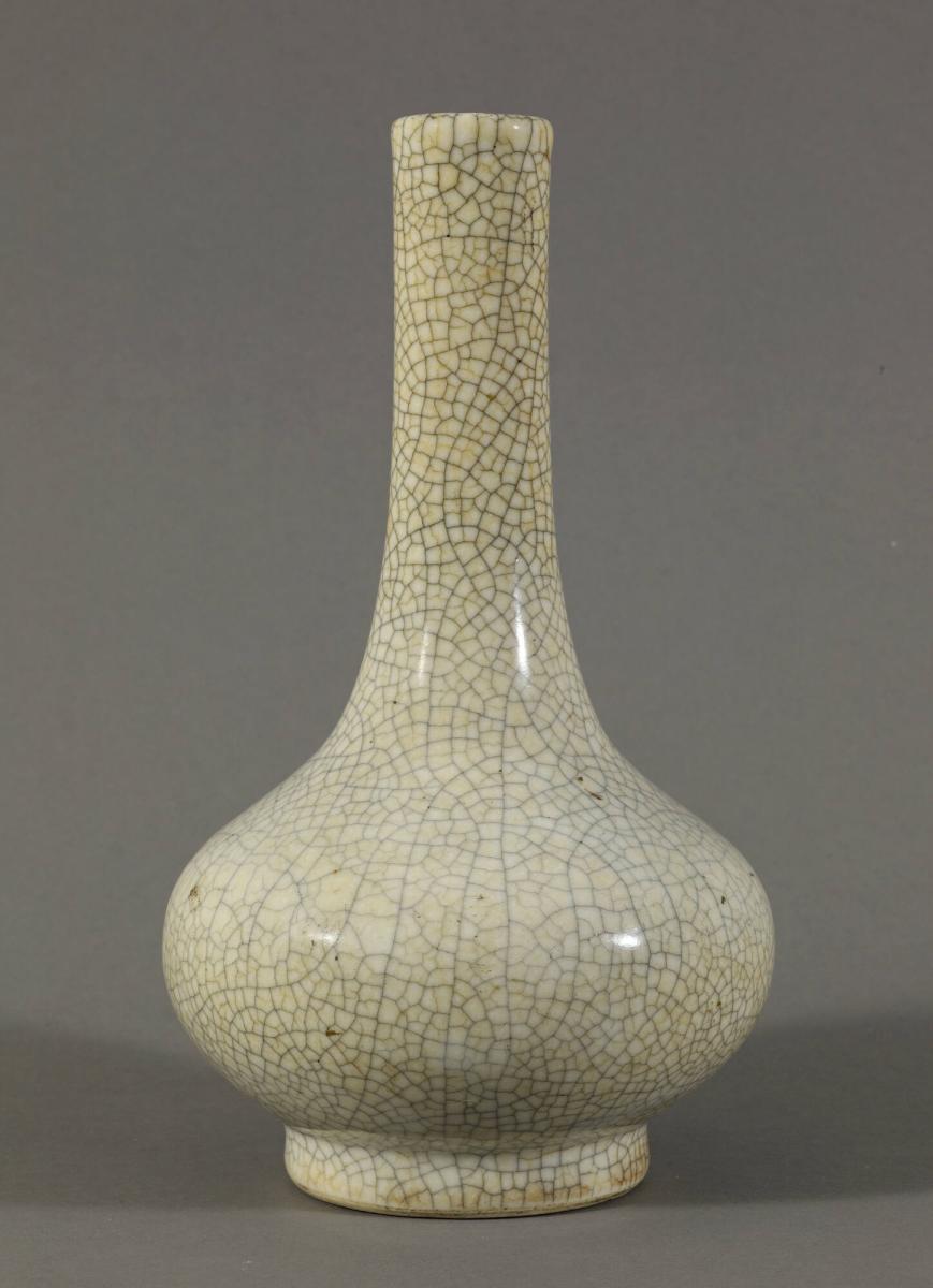 Not on viewCrackle-ware may have begun as a mistake but it developed into one of the most prized glaze types in China and among Western collectors. It is created by sudden cooling: when the surface glaze cools more rapidly than the interior clay body, it causes contraction and leaves a pattern of cracks that the potter emphasizes by staining.