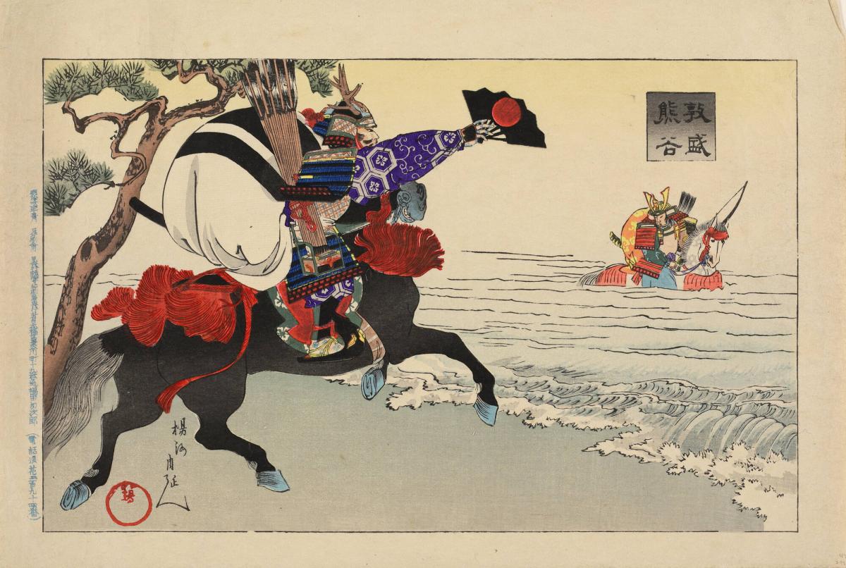 Kumagai and Atsumori at the Battle of Ichinotani, from an untitled series of historical subjects