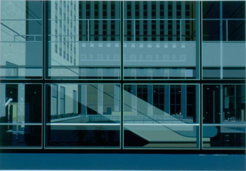 Not on viewEstes' hard-edged superrealism is an outgrowth of the immaculate clarity of Precisionist painters like Charles Demuth or Charles Sheeler. He exploits the interplay of reality and reflection inherent in the prismatic structures that define the depopulated urban landscape.