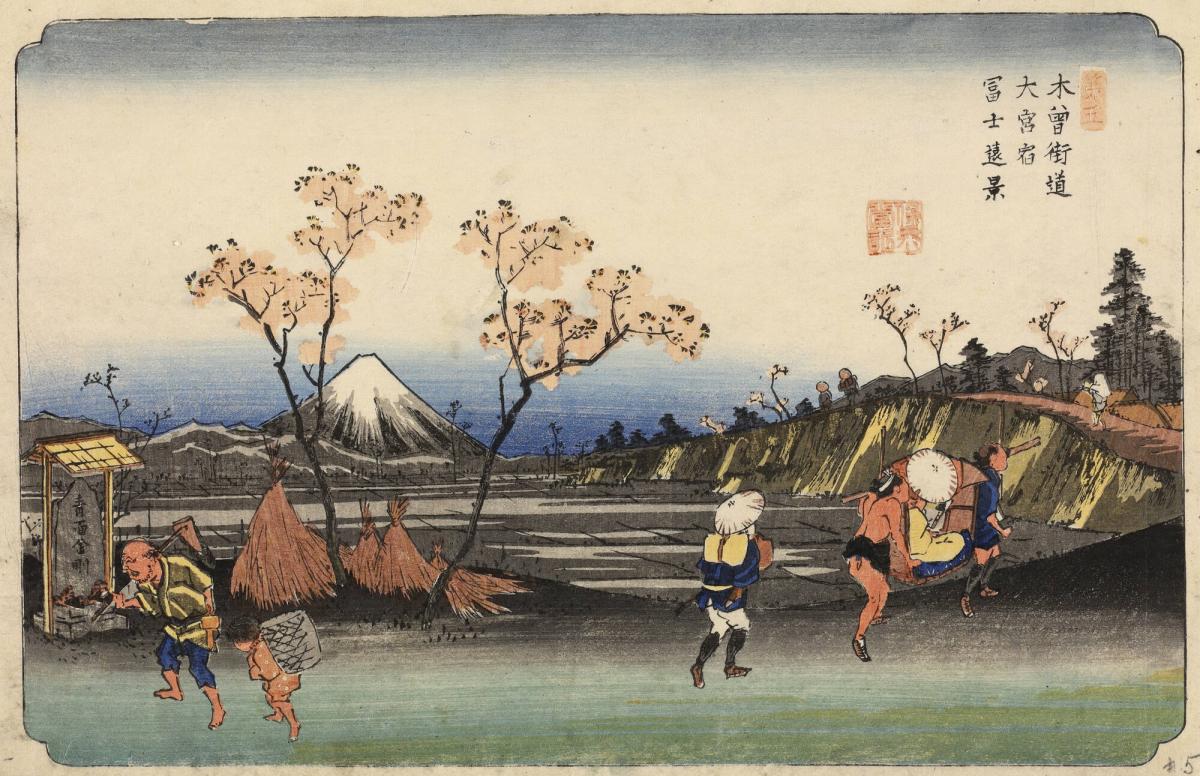 Distant View of Mt. Fuji from Omiya Station, no. 5 from the series A Set of Pictures of Kisokaidō
