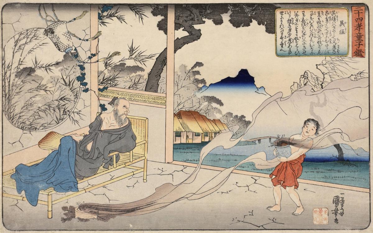 Wu Meng (Gomō) Fetching Braziers to Keep Mosquitoes from Biting His Father, from the series A Mirror for Children of the Twenty-four Paragons of Filial Piety