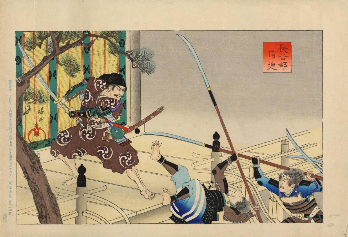 Hasebe Nobutsura Fighting Off Attackers, from an untitled series of historical subjects