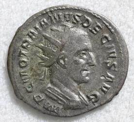 Denarius: Obverse, Head of Traianus Decius; Reverse, Victoria