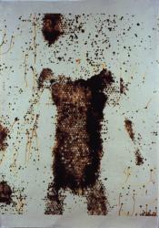 Invisible Torso #2 was part of a series made while the artist was undergoing treatment for cancer. “Invisible” refers to the body at the cellular level: the abstract but recognizable form of a body suggests imagery from a medical scan; the bubbles and drips are like burst cells and bodily fluids.