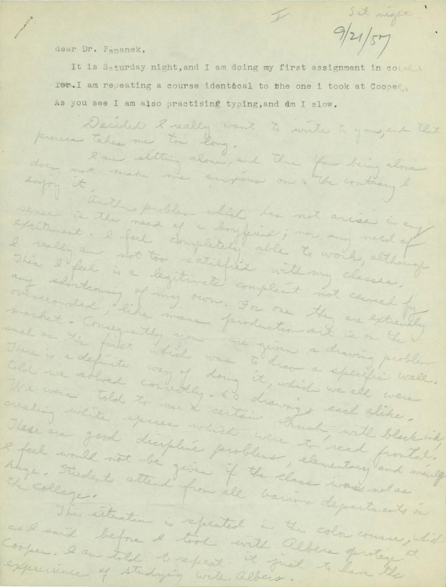 Letter from Eva Hesse to Dr. Helene Papanek
