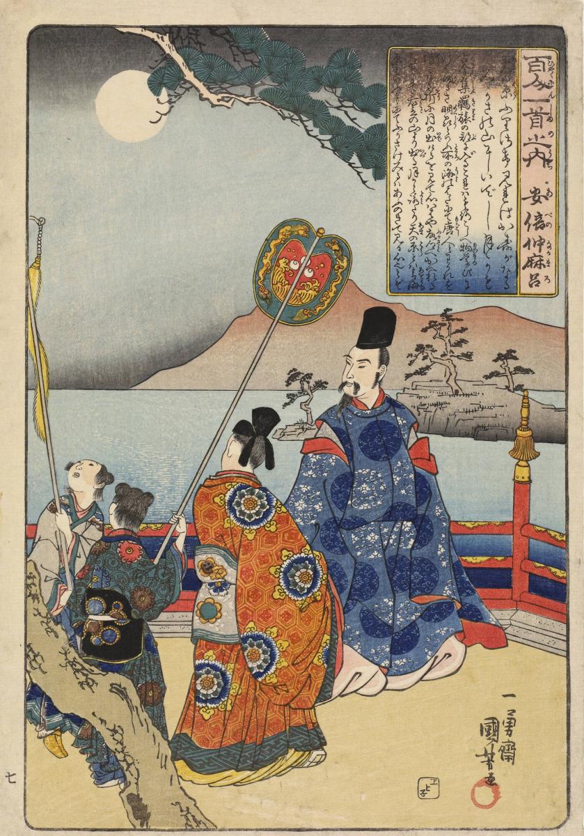 The Poet Abe no Nakamaro Watching the Moon Rise before his Departure from China, no. 7 from the series The One Hundred Poems