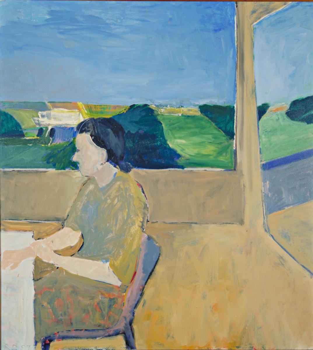 Not on viewBay Area artist Richard Diebenkorn was influenced by Matisse's painting process and his exploration of interior/exterior space and later by the work of Mark Rothko and New York Abstract Expressionists Robert Motherwell and Willem de Kooning . Although Diebenkorn once considered relocating to New York, he remained in California, where he became an influential teacher and made paintings with a palette redolent of the colors of northern California.