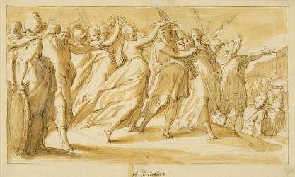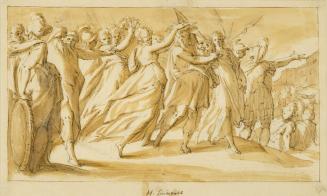 Not on viewAs David cradles the head of Goliath in his arms, several women dance in the crowd, and one plays a tambourine. A great deal of movement is conveyed here by the swaying figures and windblown drapery, and even the suggestion of strong sunlight from the left seems to impel the group onwards.