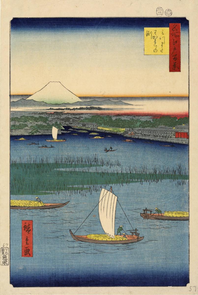 Channels at Mitsumata Wakarenofuchi (Mitsumata Wakarenofuchi), from the series One Hundred Famous Views of Edo (Meisho Edo hyakkei)