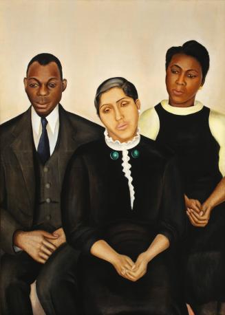 Not on viewKnown as a painter of “figures and flowers,” Belgian-born Angèle Watson traveled to New York City with a talent for portraiture and still life in 1926. Watson featured in New York exhibitions during the 1930s, where she presented striking portraits of African American family life. Negro Family depicts three figures with downcast eyes, clasped hands, and wearing black clothing as though in mourning. Watson’s characteristic light background highlights the family’s somber mood.