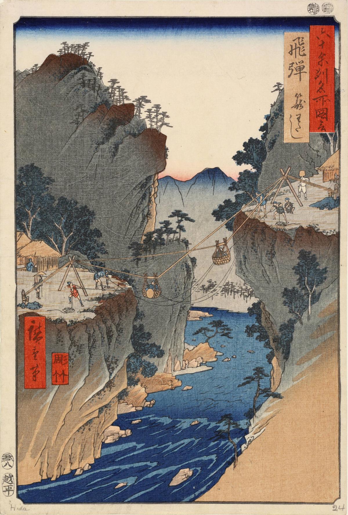 The Basket Ferry in Hida Province, no. 24 from the series Pictures of Famous Places in the Sixty-odd Provinces