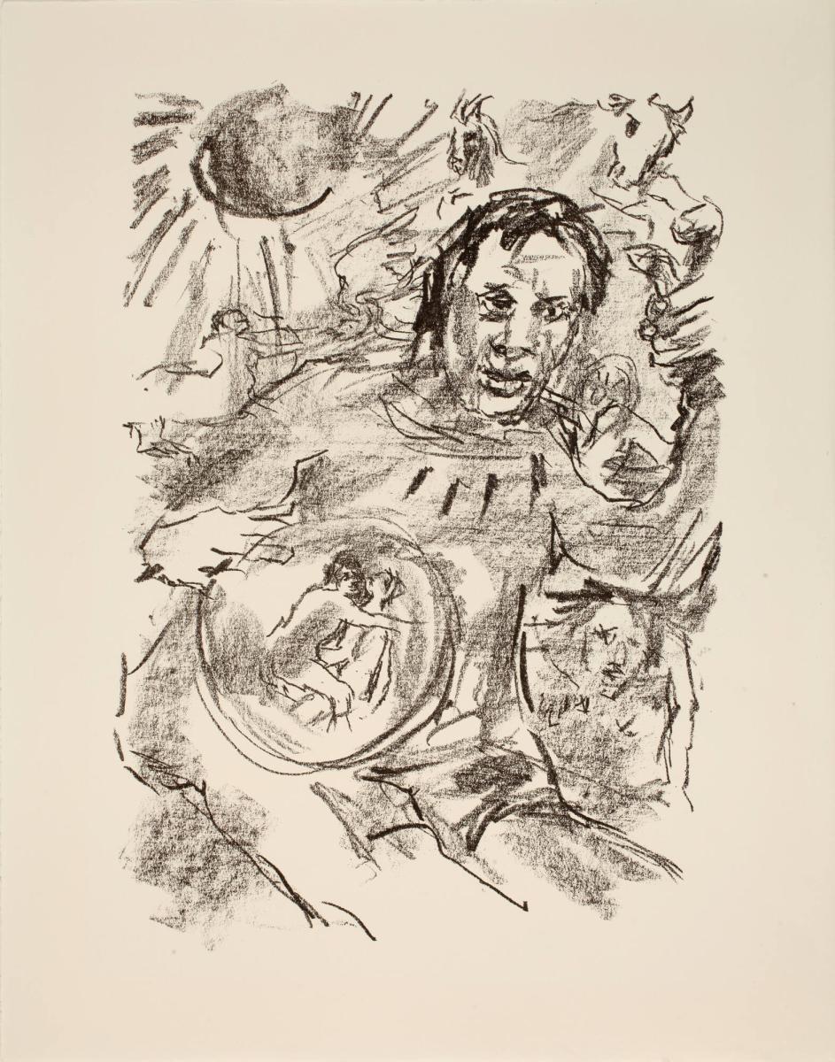 Not on viewIn 1963, Austrian painter Oskar Kokoschka created a series of 16 lithographs to illustrate William Shakespeare’s King Lear. One of the Bard’s most highly-regarded tragedies, the play follows the elderly King Lear’s descent into madness after foolishly dividing his estate among two of his three daughters based on their false flattery, resulting in a tragic outcome for all. Kokoschka’s series depicts critical points in the narrative which often correspond to dialogue by Lear and his daughters Goneril, Regan, and Cordelia, in addition to that of the other characters vying for the throne. Providing minimal information about the setting of each scene, Kokoschka’s sketchy compositions instead focus on the characters, each depicted with the artist’s characteristic energetic expressionism.