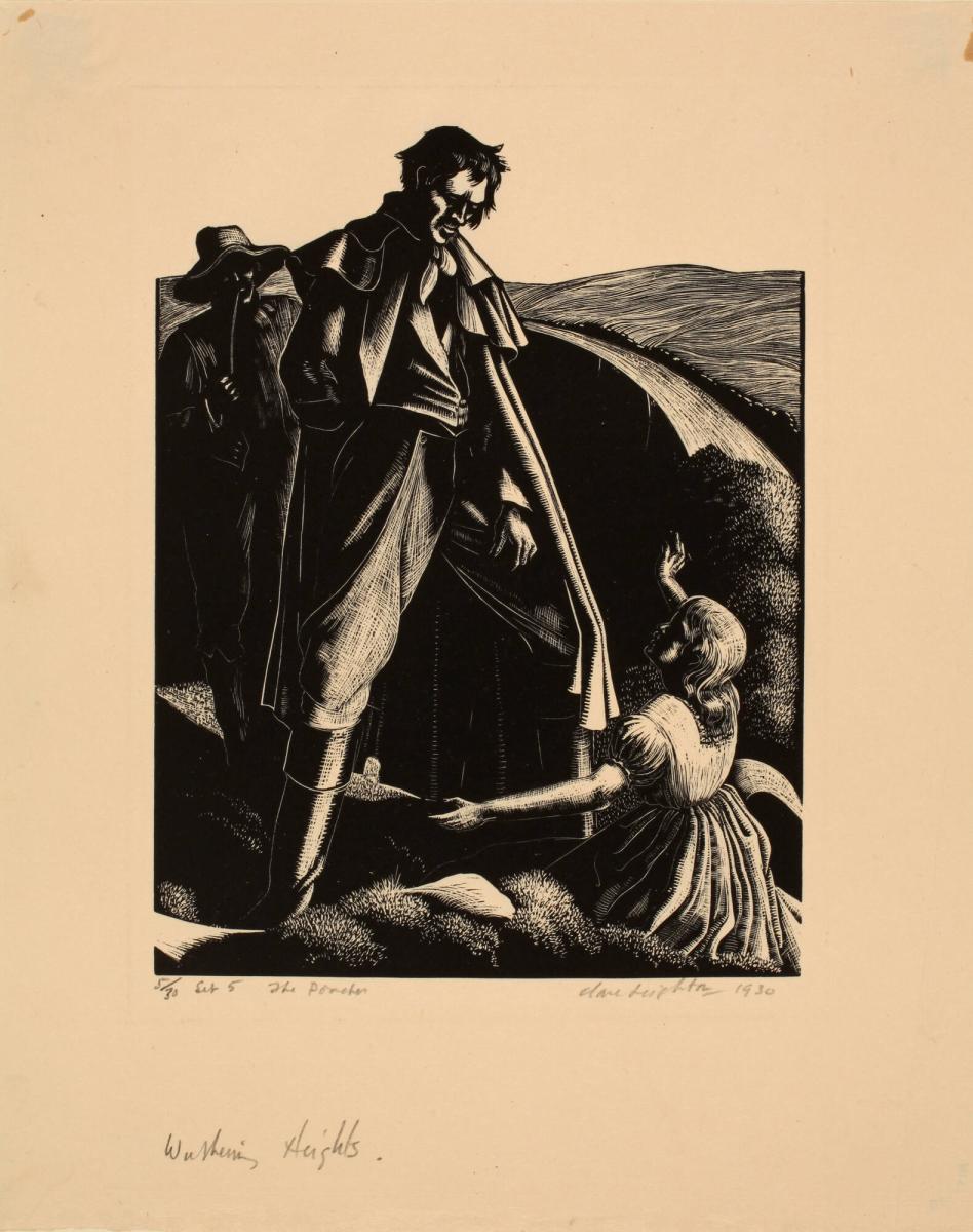 Not on viewClare Leighton, known for her illustrations of nineteenth-century British novels, also wrote prolifically on the virtues of rural life in an increasingly urban and industrial world. These wood engravings for a 1931 edition of Wuthering Heights combine Leighton's cherished English countryside with the brooding moors of Emily Brontë's imagination.
