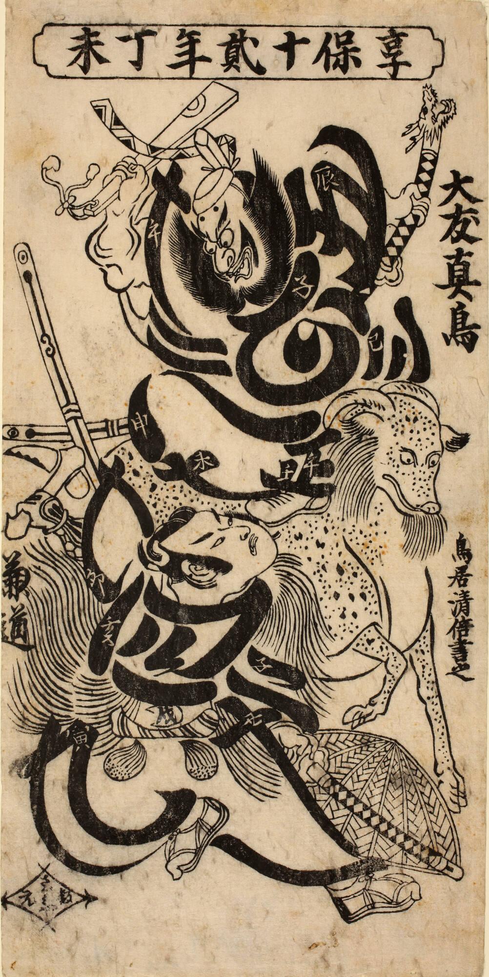 The Warrior Kanemichi Confronting the Usurper Ōtomo no Matori who is Riding a Goat