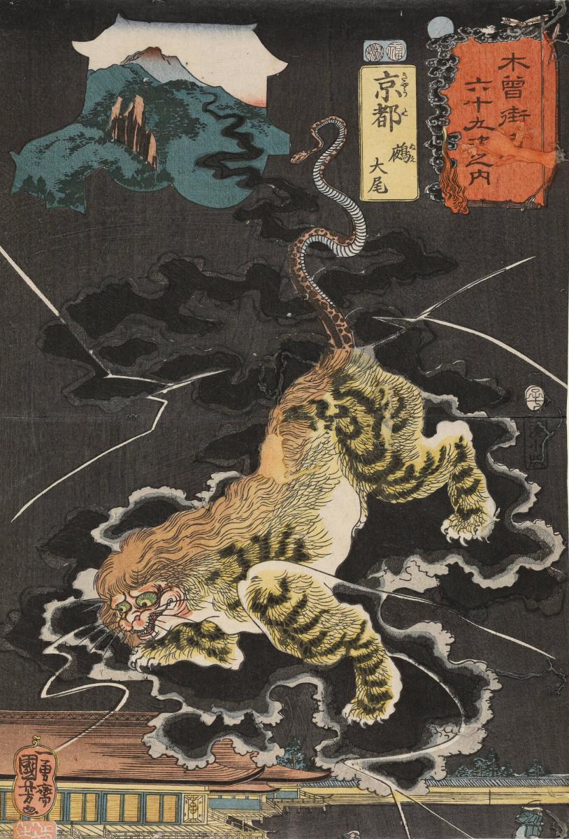 Kyoto: The "Nue," a Monster, Descending on the Imperial Palace, no. 70 from the series The Sixty-nine Stations of the Kisokaidō