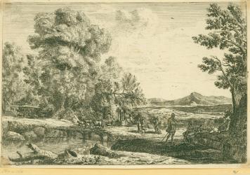 Not on viewThe story of Rebecca and Eliezer, told in Genesis 24:1-20, recounts how the servant of the Jewish patriarch Abraham was sent to identify a wife for Isaac, Abraham’s beloved son. The servant Eliezer determined that the chosen maiden would be the first to offer him a drink and water for his camels on his arrival in the town of Nahor. Eliezer thus tied the selection of a bride to her hospitality, her readiness to relieve his thirst and that of his animals, her nurturing, kindly air, and her concern for the well-being of a traveler. The lush landscape forms a perfect analogy to the hospitality and attention of the young Rebecca.