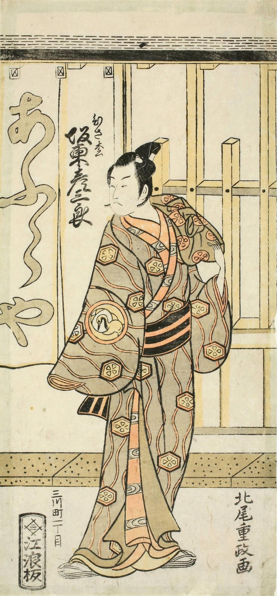 The Actor Bandō Hikosaburō II as the Clerk Hisamatsu Standing Outside the Oil Merchant’s Shop to See his Lover