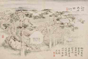 An Old Studio Shaded by Paulownia Trees, from the album Flowers, Rocks, Bamboo, and Landscapes
