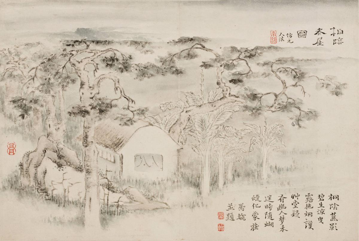 An Old Studio Shaded by Paulownia Trees, painted after a Yuan dynasty style