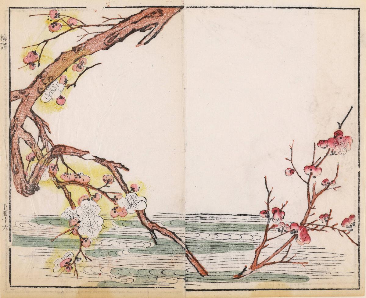 Prunus Branch Dipping into Water, from Mustard Seed Garden Painting Manual