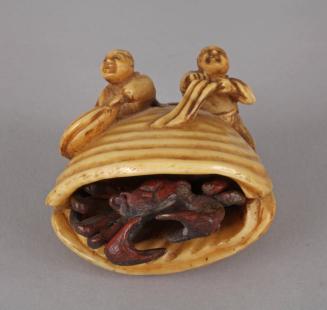 Netsuke of Two Men on Large Shell with a Crab Inside