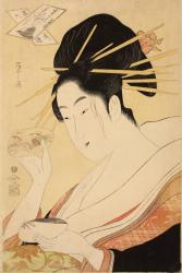 Priest Kisen: a Courtesan Holding a Pair of Painted Shells, from the series Parodies of Six Immortal Poets in Modern Dress
