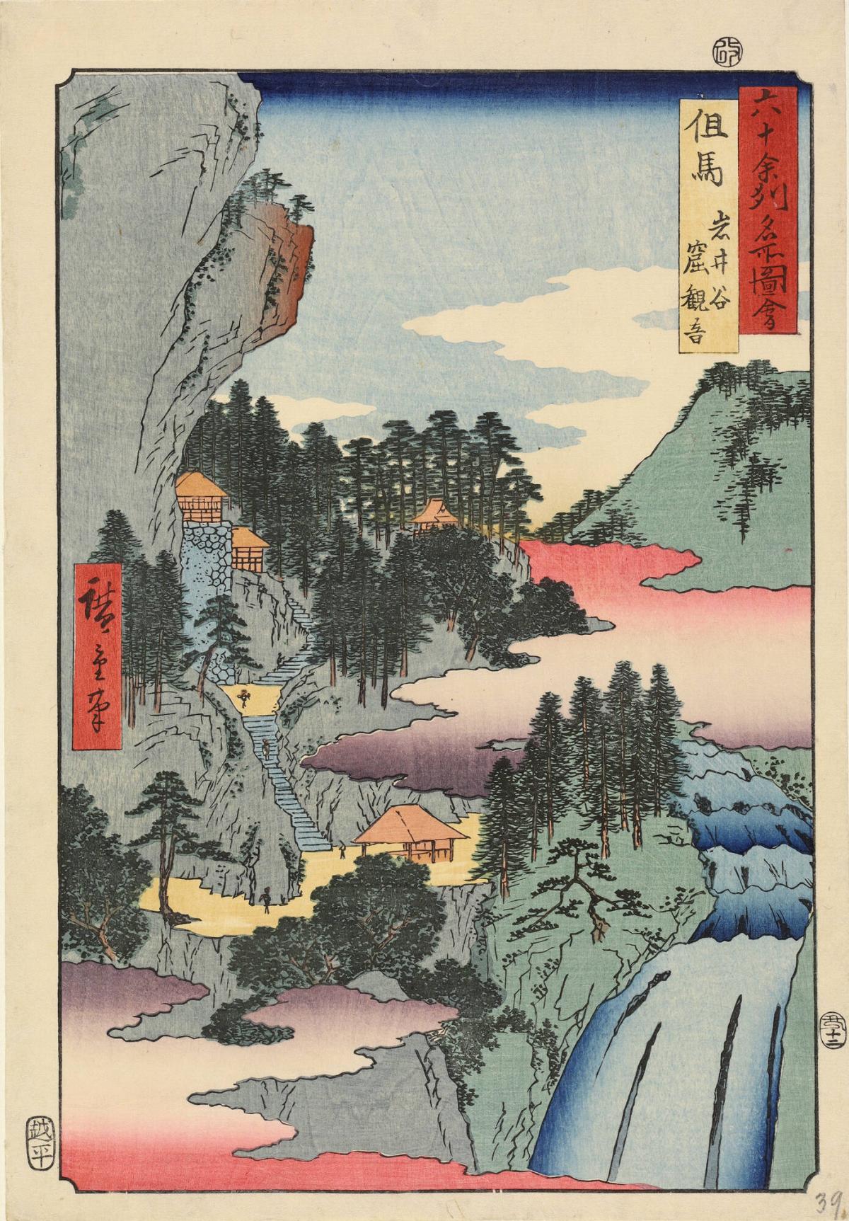 The Cave Temple of Kannon in the Iwai Valley, no. 39 from the series Pictures of Famous Places in the Sixty-odd Provinces