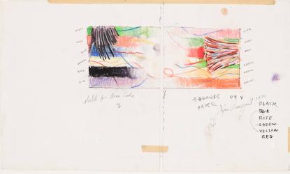 Not on viewThis drawing was preparatory to a painting of the same year now in the Walker Art Center, Minneapolis, and reprises the composition of a color lithograph made by the artist one year earlier. The title and composition allude to telephone communications, sliced cables and broken connections, while feather-like forms in the upper left suggest a bird in flight.