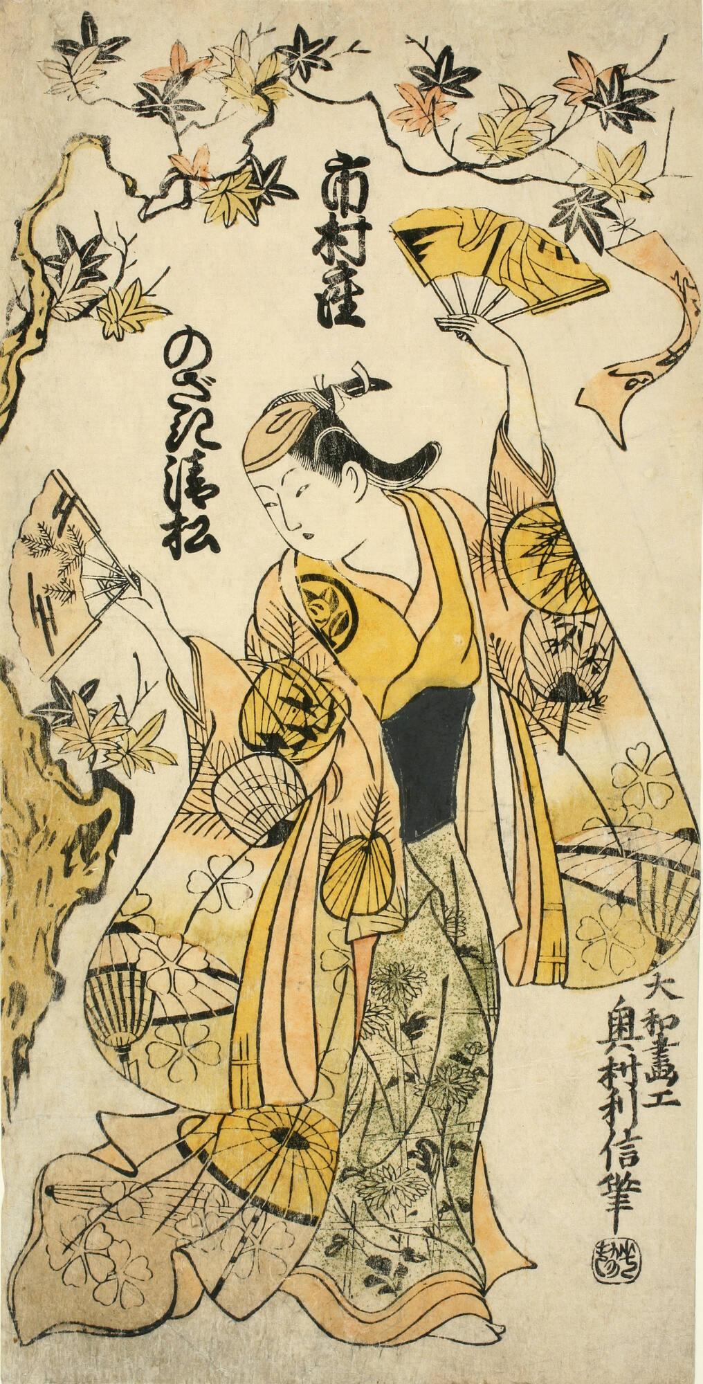 The Actor Nozaki Kiyomatsu Dancing Beneath a Maple Tree in a Performance at the Ichimura Theater