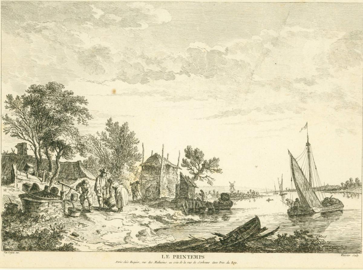 PortfolioSeasons, after paintings by van Goyen. Published by Huguier in Paris.
