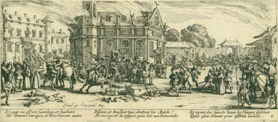 Not on viewAmong Callot’s best-known prints, the Miseries and Misfortunes of War series of etchings depicts the atrocities and carnage inflicted across Europe during the religious wars waged throughout the 17th century. With the conflict between Catholics and Protestants at the heart of its genesis, the Thirty Years’ War (1618–48) remains one of the longest and most destructive wars in European history. Rather than follow the traditional practice of depicting significant battles or lauded military figures, Callot presented instead the more horrifying aspects of war in numerous scenes of mayhem and havoc wrought by unruly troops on the local populace. There is little doubt that Callot witnessed deeds similar to those depicted in this series, but the excessive nature of the destruction and violence, as well as the aesthetically sensitive—albeit disturbing—manner in which he depicted them, suggests that Callot relied in equal parts on his creativity and on his personal experience. His haunting presentation of war was influential for centuries, finding its successors in the later works of Goya and Käthe Kollwitz.