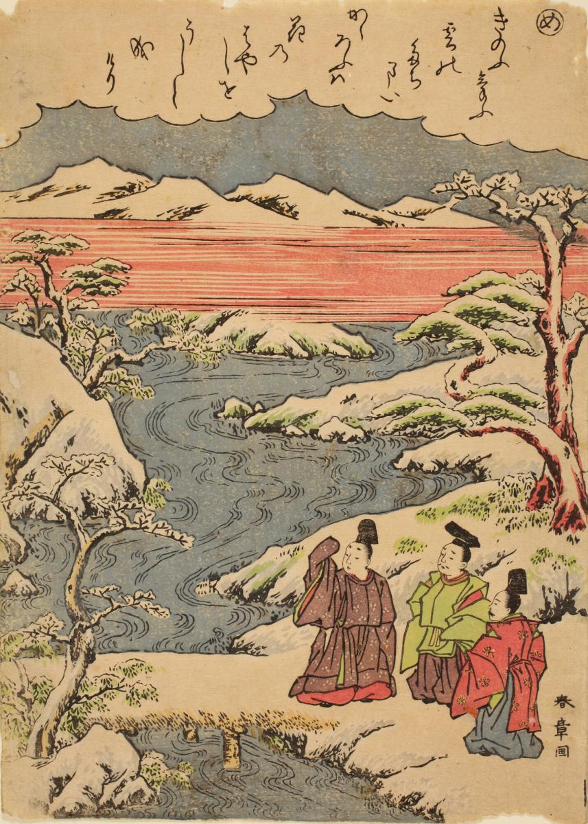 Courtiers in a Snowy Landscape, from an untitled series of illustrations from Tales of Ise