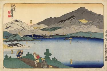 Minakuchi to Kyoto with a View of Lake Biwa, no. 12 from the series A Set of Twelve Pictures of Famous Places on the Tōkaidō
