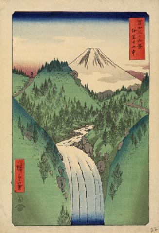 Waterfall in the Mountains of Izu, no. 22 from the series Thirty-six Views of Mt. Fuji