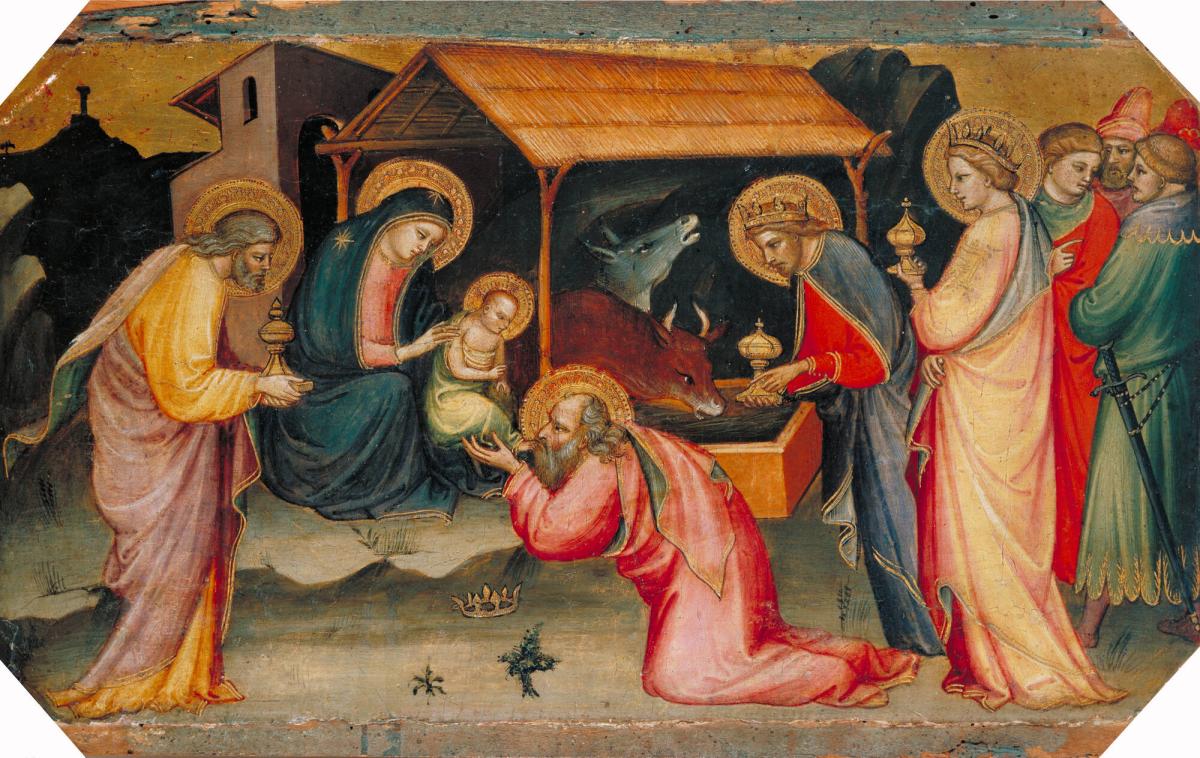 Mariotto di Nardo assumed the role of one of the principal painters of Florence following the death of Agnolo Gaddi in 1396, and received many prestigious commissions in Florence and the surrounding area. To manage the demands of his patrons, he maintained a large workshop with several assistants. The Adoration is one of the artist's most sophisticated and accomplished works, and may have been produced with the assistance of the premier figural sculptors of the day, Lorenzo Ghiberti. Particularly impressive about this work is the adventurous spatial construction and figural contrapposti, as well as the subtle light effects. Certainly the painting is indebted to Ghiberti's bronze relief of the same subject on the north door of the Baptistry in Florence.