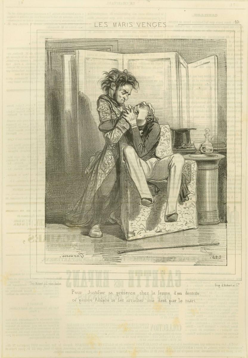 Pour justifier sa présence chez la femme d'un dentiste...(To justify his presence at the home of a dentist’s wife...)