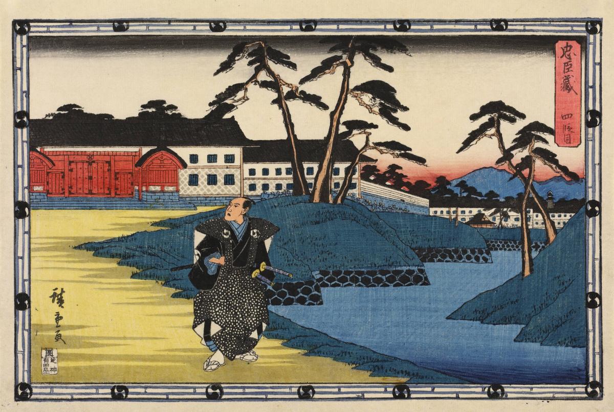 Yuranosuke Swears Revenge Outside his Master's Mansion in Edo, Act 4 from the series Chushingura