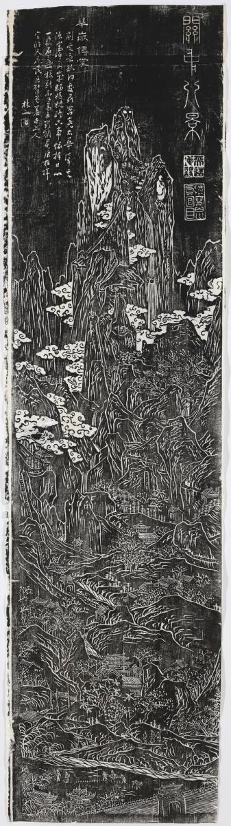 The Eight Views of Guānzhōng were depicted in various mediums including painting, poetry, and calligraphy. Artists emphasized both the natural beauty and cultural significance of each location, often incorporating seasonal and temporal elements. The theme remained popular through the Ming and Qing dynasties, influencing later artistic traditions and serving as an important documentation of Guānzhōng's historical landscape. These examples are ink rubbings based on paintings by the 19th-century artist Wǔ Tíngguì.