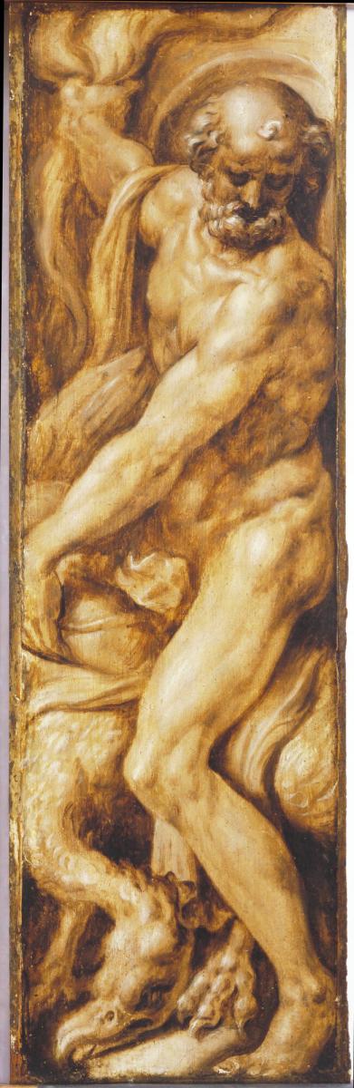Not on viewThese two works (AMAM 1949.81 & 82) are part of a series of twelve panels that were kept together until just after 1946, when they were sold from the collection of the Earl of Kinnaird at Rossie Priory in Scotland. Four are in the Rijksmuseum (Samson conquering the lion, Samson destroying the temple, Hercules and Nessus, and Neptune), four are in the Yale University Art Gallery (Hercules carrying the column of heaven, Hercules and Antaeus, Hercules and the Hydra, and Saturn), and two were sold at auction at Sotheby's London in 2008 (Samson grasping the gates of Gaza and Pluto).