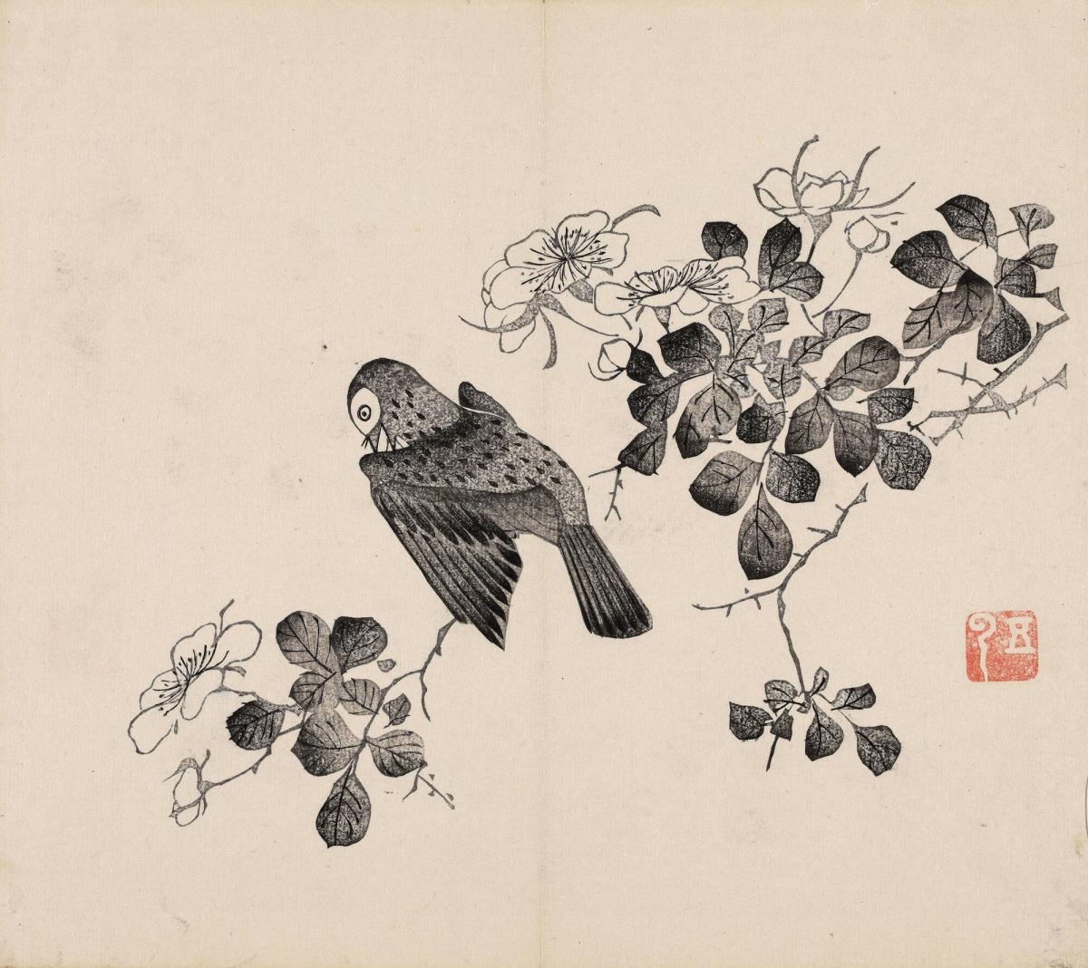 A Bird on a Blossoming Branch, from the Ten Bamboo Studio Calligraphy and Painting Manual