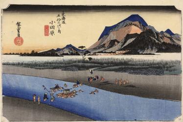Fording the Sakawa River at Odawara, no. 10 from the series Fifty-three Stations of the Tōkaidō