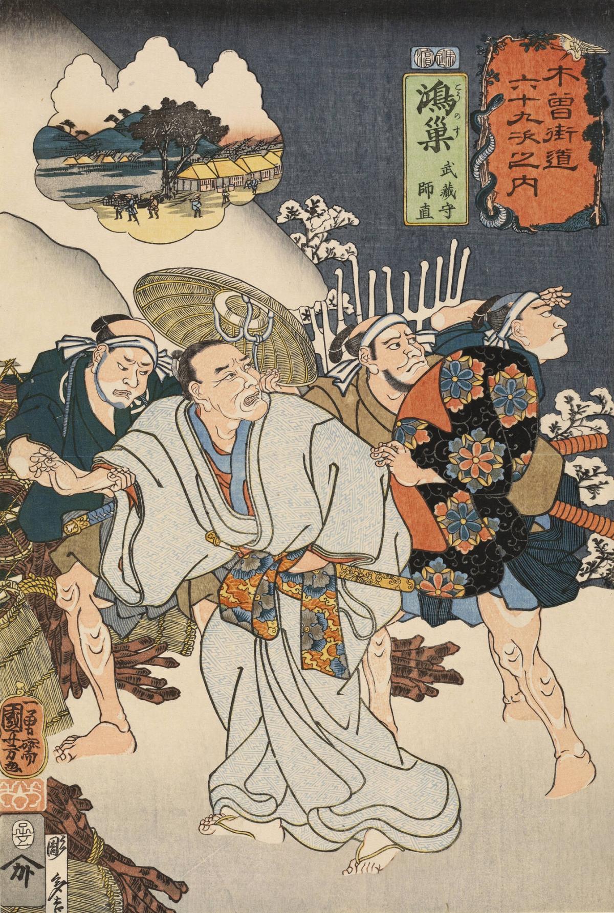 Konosu: Ko no Moronao Attempting to Hide from the Forty-seven Ronin, no. 8 from the series The Sixty-nine Stations of the Kisokaidō