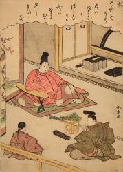 Courtier Offering a Gift to a Lord, no. 27 from an untitled series of illustrations from Tales of Ise