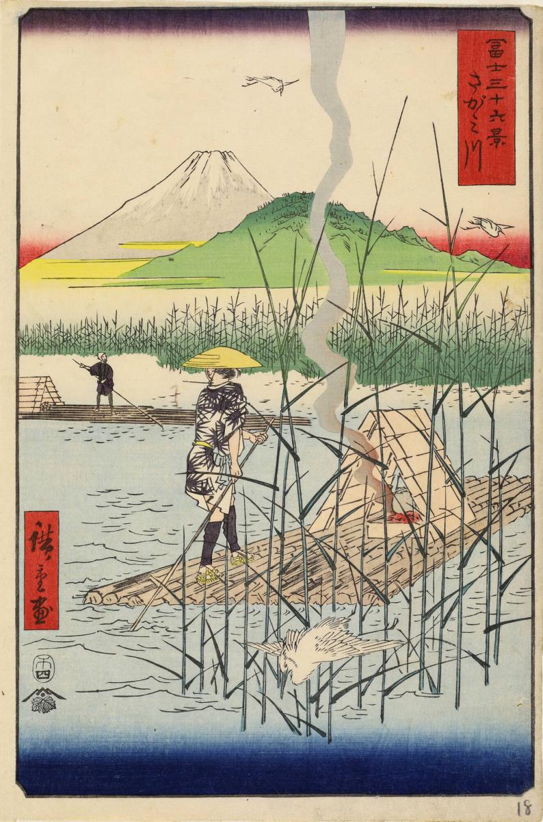 Rafts on the Sagami River, no. 18 from the series Thirty-six Views of Mt. Fuji